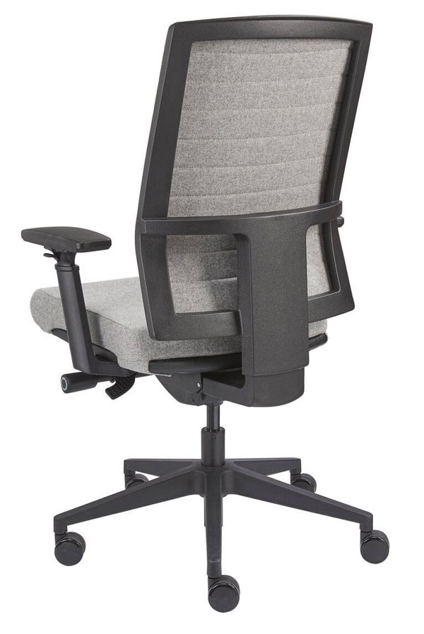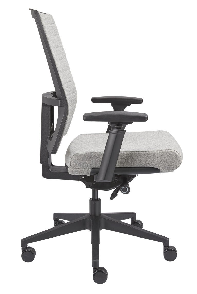 Ergobase-S40 bureaustoelen zijn geschikt voor fulltime werkers. Met zijn stoffering met horizontale sierstiknaden komt deze stoel wat huiselijker over. Zeker met deze uitvoering met deze lichtgrijze wolvilt stof. De ideale thuiswerk bureaustoel zou je bijna kunnen zeggen. Daarom leveren wij hem ook vanuit voorraad in diverse stofkleuren. EN 1335 goedgekeurd. Kortom een zeer complete professionele bureaustoel voor een prima prijs.
